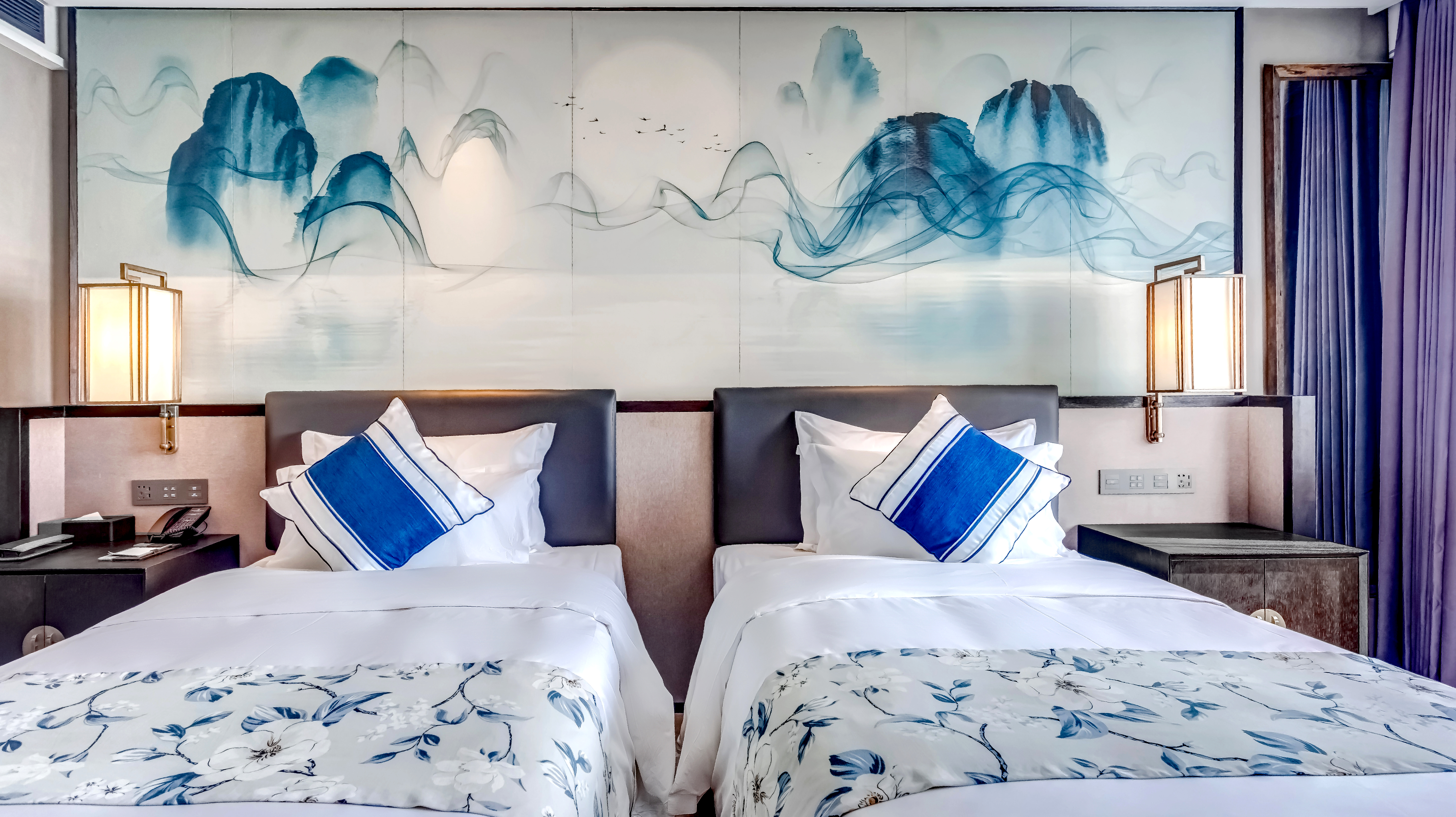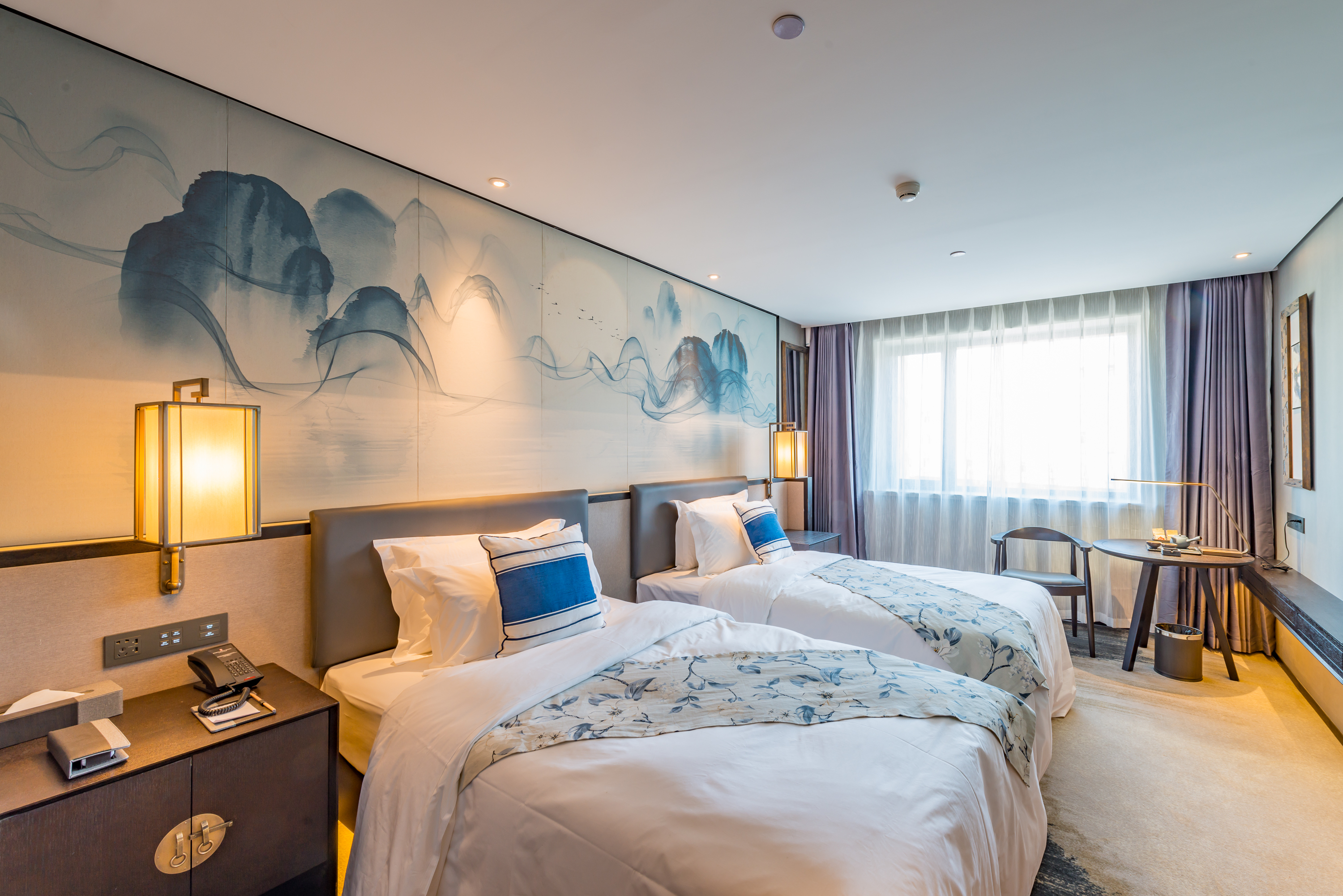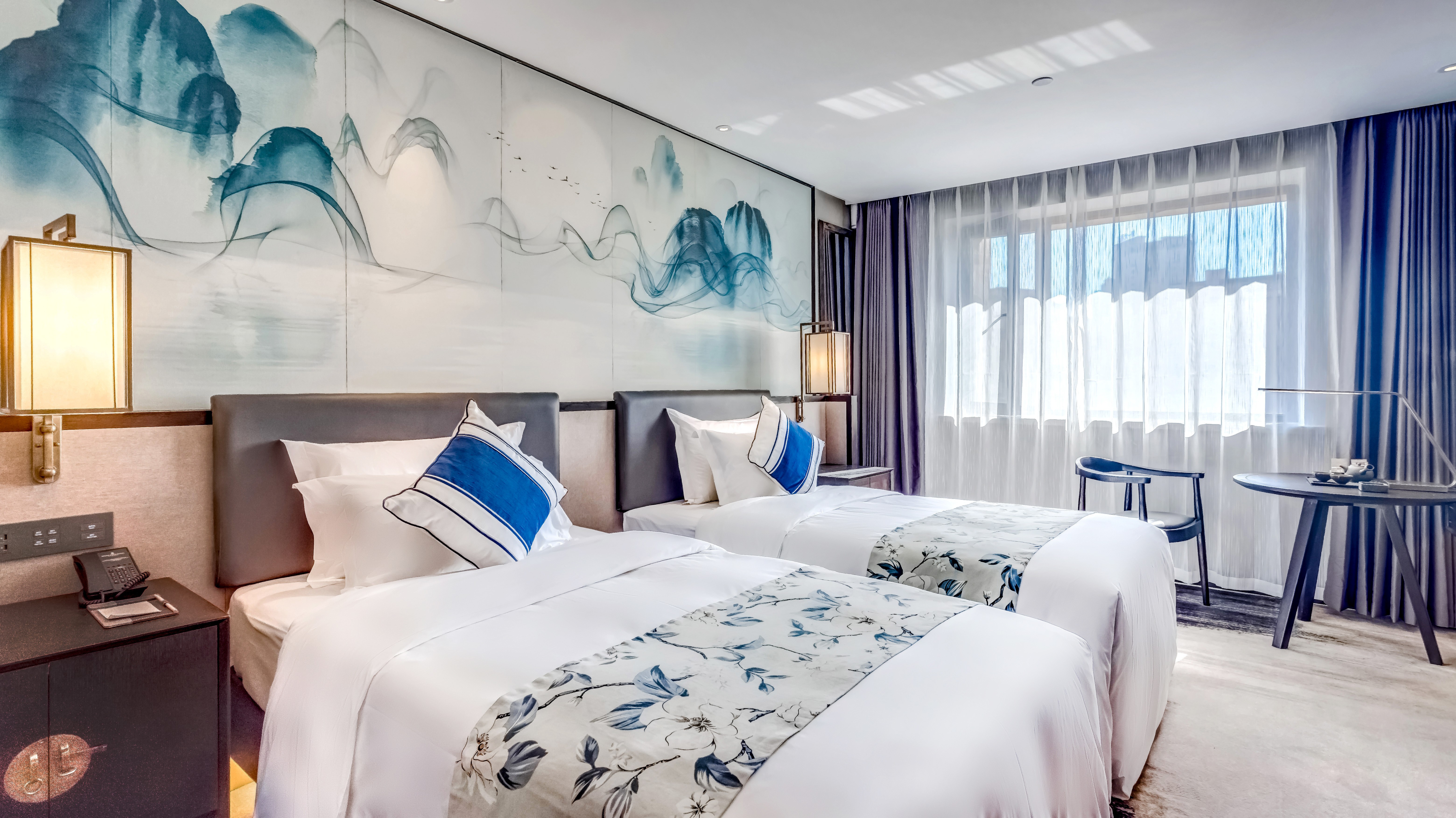 东谷·标准双床房(静音冰箱+乳胶枕+中式茶具)