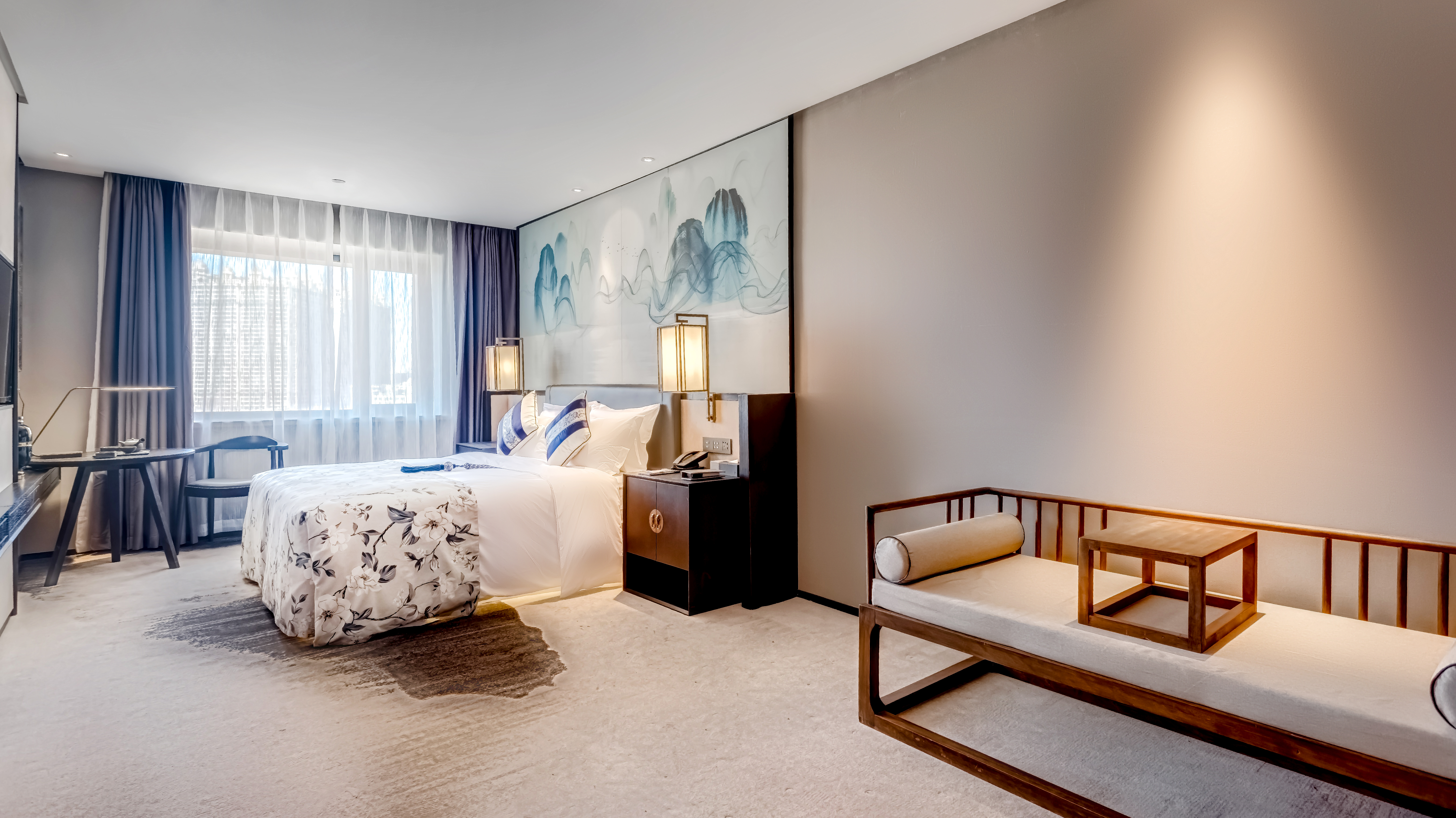 东谷·行政套房(独立会客厅+静音冰箱+中式藤椅)
